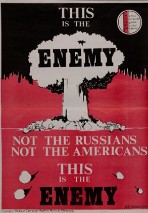 This poster exhibits how Medact– or the Health care Campaign Against Nuclear Weapons (MCANW) as it was then identified –tried to strip the nuclear situation of East versus West dogma, campaigning as an alternative from a place of healthcare authority.